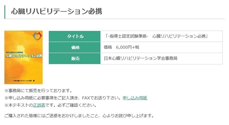 心臓リハビリテーション指導士試験を受講するために最低限必要な参考書の購入方法について解説します。